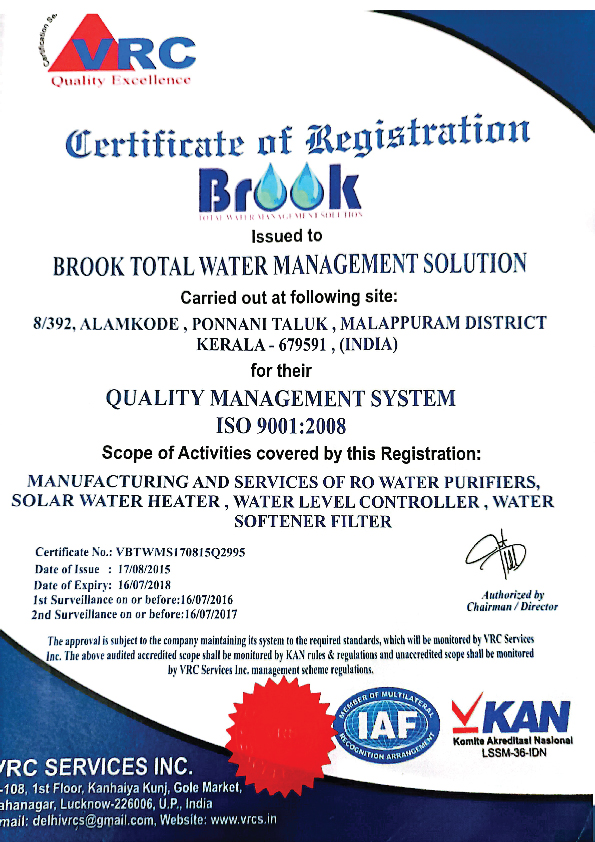 There is nothing as graceful as water, whether it’s soothing bath after a heavy workload or a few drops grazing on our parched lips. But, to pass pristine, pure water over to people without impurities at a time when almost everything is contaminated, one requires effective water management skills and resources. We could witness how a Master Artist guides his source of bounty through the brooks in a forest. An efficient water purifying company should at best be like a brook, a small river in the forest. Hence, the Brook Water Purifiers which was started in 2006, one year and a decade after the mother company visualised it.